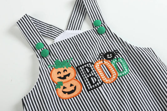 Lil Cactus Black Stripe Pumpkin 'Boo' Overalls